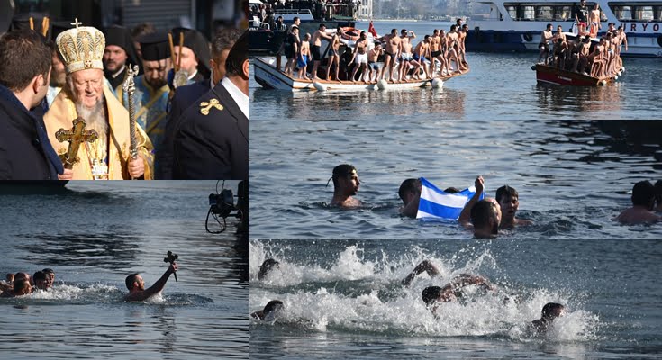 Στη συνέχεια ο Οικουμενικός Πατριάρχης τέλεσε τον Αγιασμό των Υδάτων στον Κεράτιο κόλπο, παρουσιά πλήθος πιστών από όλη την Ελλάδα, μεταξύ αυτών και οι Σαμιώτες Γιώργος και Άννα Κούμη Ζαΐμη, όπου έστειλαν φωτογραφίες από την τελετή στο Samos24.Τους ευχαριστούμε!