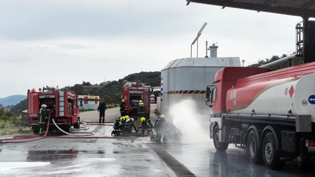 Στο πλαίσιο της συνεργασίας της Υπηρεσίας με την εταιρεία αποθήκευσης υγρών και αερίων καυσίμων «Silk-Oil» και τον AΠΣ της «ΔΕΗ Α.Ε.», την Πέμπτη 13 Μαρτίου 2025, πραγματοποιήθηκε με επιτυχία άσκηση πεδίου με την κωδική ονομασία «Υγρό Πυρ 2025». Η άσκηση έλαβε χώρα στις εγκαταστάσεις των δύο εταιρειών, οι οποίες βρίσκονται στο Κοκκάρι του Δήμου Ανατολικής Σάμου, περίπου στις 10:30 π.μ.