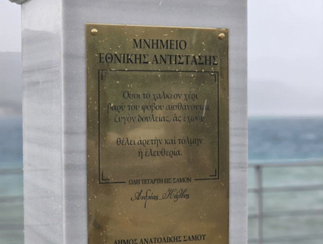 - Θα ακολουθήσει επιμνημόσυνη δέηση και κατάθεση στεφάνων στο μνημείο της Εθνικής Αντίστασης, πλησίον του Λιμεναρχείου Σάμου. Στεφάνια θα καταθέσουν εκπρόσωποι της πολιτικής και στρατιωτικής ηγεσίας του τόπου, των σωμάτων ασφαλείας και αντιστασιακών οργανώσεων.
