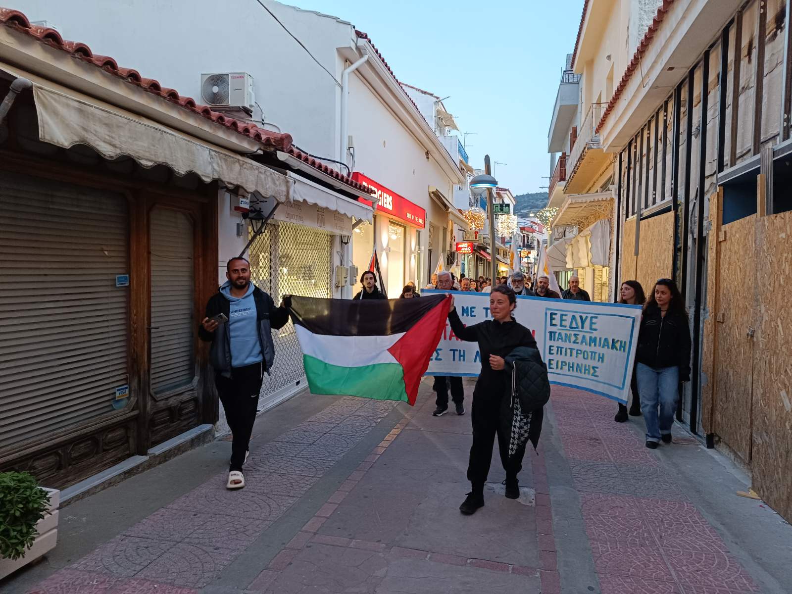 Με πικετοφορία, την Παρασκευή 28-3-2025, στους κεντρικούς δρόμους της πόλης του Βαθιού, μέλη και φίλοι της Πανσαμιακής Επιτροπής Ειρήνης, εργαζόμενοι στο προσφυγικό και Παλαιστίνιοι πρόσφυγες, κατήγγειλαν ακόμη μια φορά το έγκλημα σε βάρος του Παλαιστινιακού λαού στη Λωρίδα της Γάζας , αλλά και στη Δυτική Όχθη, από το κράτος – δολοφόνο του Ισραήλ. «Το έγκλημα αυτό, έχει υπογραφή ΝΑΤΟ-Ε.Ε και Ισραηλινοί» βροντοφώναξαν οι διαδηλωτές, ενώ εξέφρασαν την σταθερή αλληλεγγύη και συμπαράστασή τους στον ήρωα λαό της Παλαιστίνης που παρά τις χιλιάδες νεκρούς του , δεν σκύβει το κεφάλι. Σε μια σύντομη στάση της πικετοφορίας στη κεντρική πλατεία της πόλης μίλησε η Ρούλα Στεφανάκη – Μαυρατζώτη μέλος του Εθνικού Συμβουλίου της ΕΕΔΥΕ και πρόεδρος της Επιτροπής, η οποία ενημέρωσε για τον νέο γύρο της γενοκτονίας κατά των Παλαιστινίων απ[ο τους Ισραηλινούς και υπογράμμισε ότι το Ισραήλ έχει την αμέριστη συμπαράσταση των ΗΠΑ και της Ε.Ε, καταγγέλλοντας ταυτόχρονα τους κοινούς βομβαρδισμούς ΗΠΑ – Ισραήλ εναντίον της Υεμένης και τις συνεχιζόμενες επιθέσεις στο Λίβανο και τη Συρία. Τόνισε ιδιαίτερα τις ευθύνες της κυβέρνησης της ΝΔ και επισήμανε: «Δίχως ντροπή και τσίπα, ο έλληνας πρωθυπουργός θα επισκεφθεί την Κυριακή το Ισραήλ για να συναντηθεί με τον χασάπη Νετανιάχου, τον εγκληματία πολέμου που σε βάρος του εκκρεμεί ένταλμα σύλληψης! Για να επιβεβαιώσει – λέει- τους κοινούς στόχους για σταθερότητα, ασφάλεια και ευημερία στην περιοχή της Ανατολικής Μεσογείου, την ώρα που οι Ισραηλινοί σφαγιάζουν ξανά γυναικόπαιδα!»