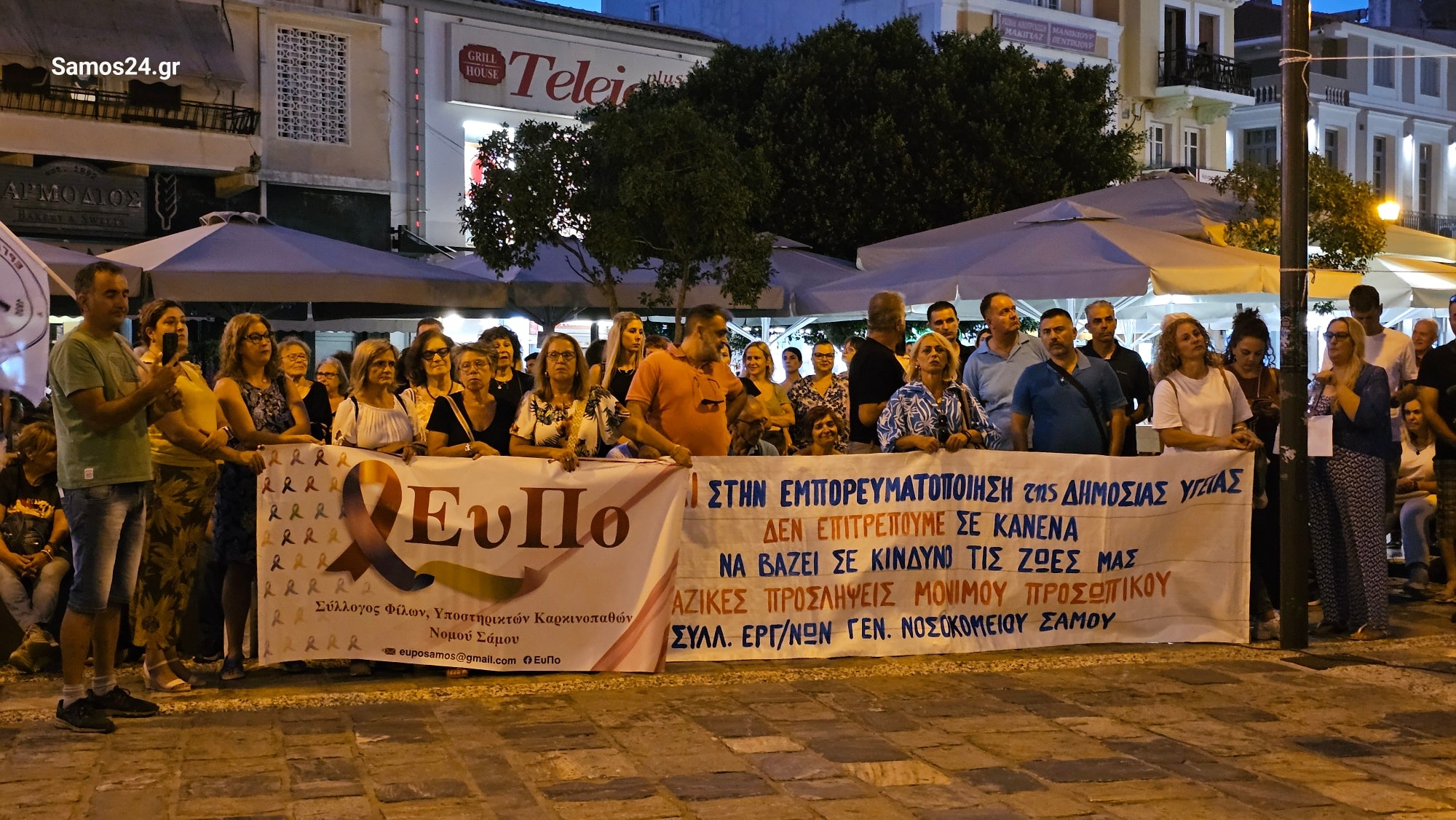 Με παλμό και σημαντική συμμετοχή πραγματοποιήθηκε το απόγευμα της Τρίτης 16 Σεπτεμβρίου η συγκέντρωση διαμαρτυρίας για την Υγεία στην πλατεία Πυθαγόρα στο Βαθύ, που συνδιοργάνωσαν το Εργατικό Κέντρο Σάμου, το Νομαρχιακό Τμήμα Σάμου της ΑΔΕΔΥ και ο Σύλλογος Εργαζομένων του Γενικού Νοσοκομείου Σάμου.