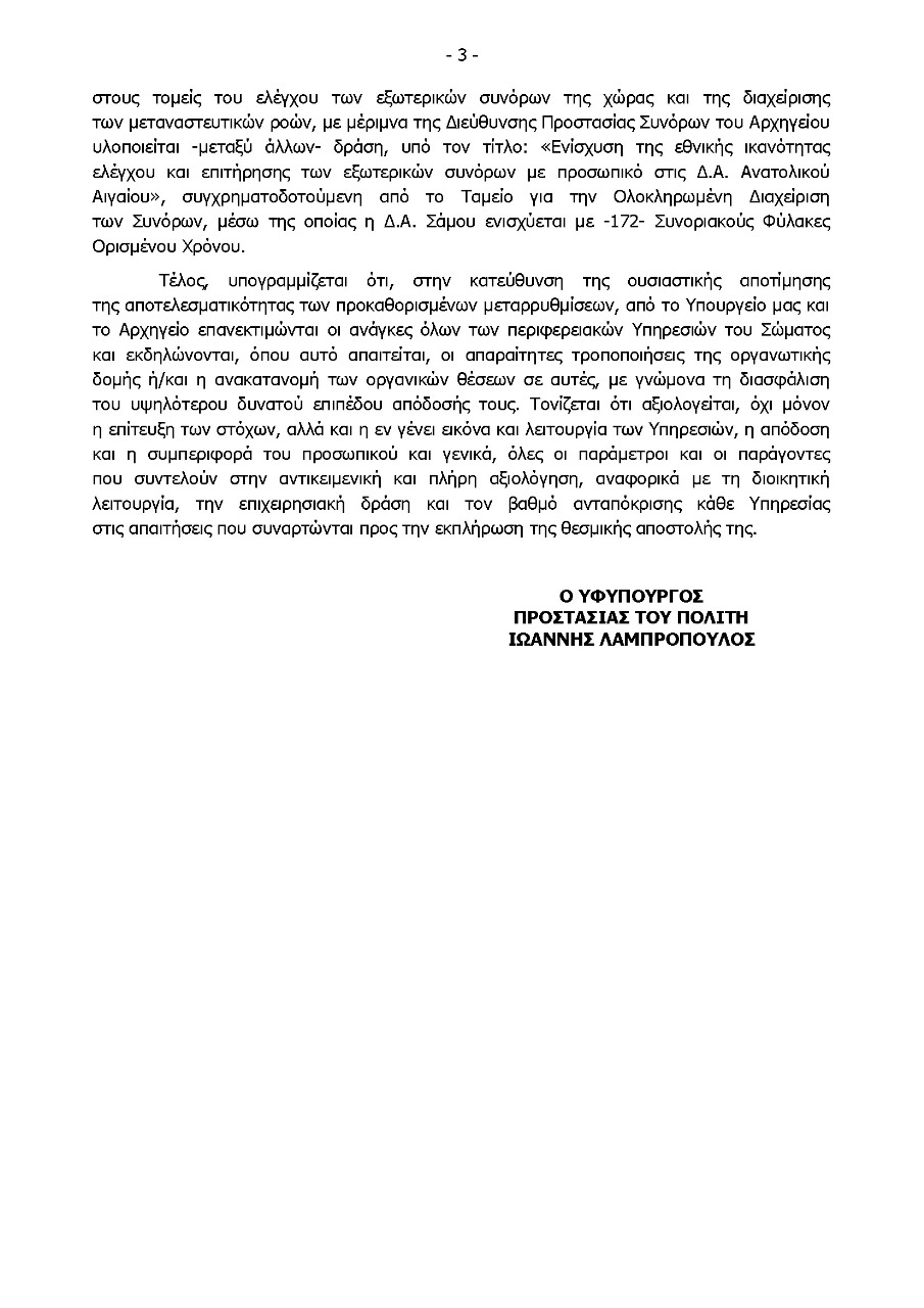 3. Με ποιο τρόπο προτίθεται το Υπουργείο να «εξισορροπήσει» τη διαφορά μεταξύ αστυνομικών που μετατίθενται προς τη Σάμο – οι οποίοι είναι η μειοψηφία – με αυτούς που μετατίθενται εκτός αυτής.