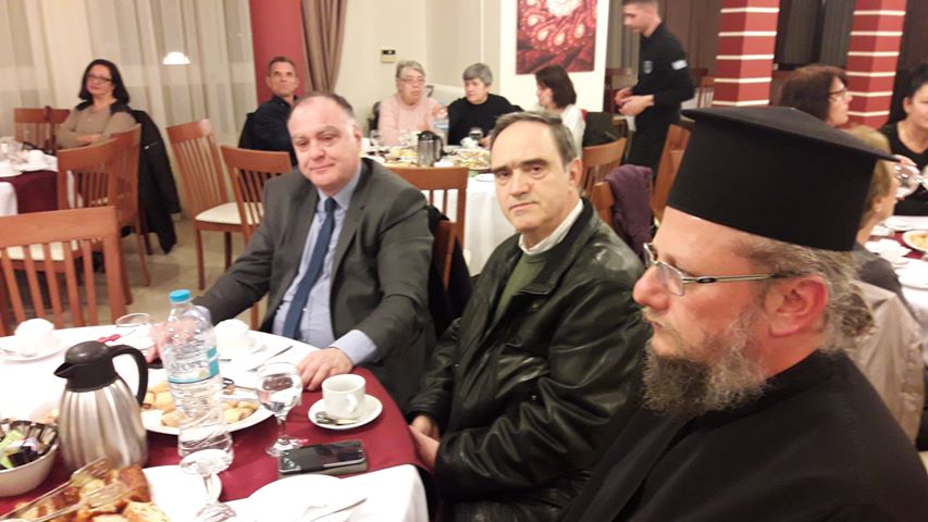 Στη συνέχεια κόπηκε και μοιράστηκε η βασιλόπιτα, με τις ευλογίες του εφημέριου του Ιερού Ναού Αγίου Χαραλάμπους, πατήρ Εμμανουήλ Γιαγουρτά.