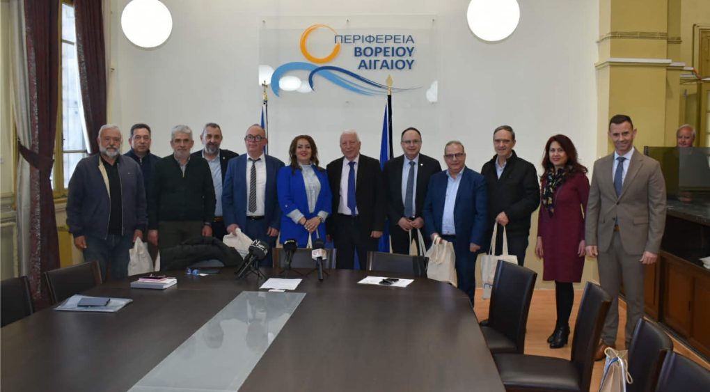 Ο Περιφερειάρχης Βορείου Αιγαίου Κωνσταντίνος Μουτζούρης συναντήθηκε σήμερα με εκπροσώπους Επιμελητηρίων από το Βόρειο Αιγαίο και την Θεσσαλία με βασικό θέμα συζήτησης την ακτοπλοϊκή σύνδεση των νησιών του Βορείου Αιγαίου με τον Βόλο.