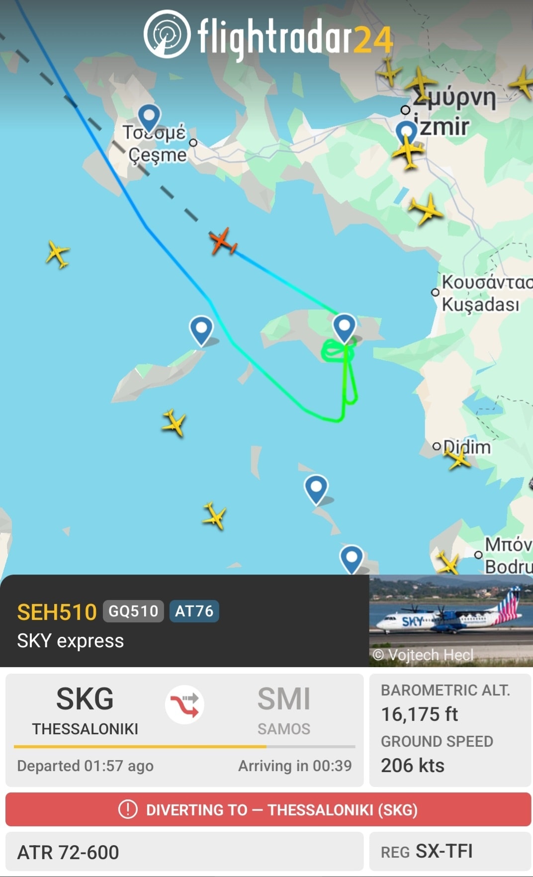 Το αεροσκάφος πραγματοποίησε κύκλους αναμονής πάνω από τη Σάμο και στη συνέχεια πήρε πορεία επιστροφής, σύμφωνα με τις προβλεπόμενες διαδικασίες.