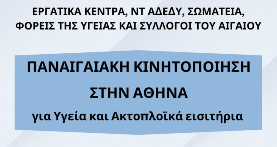 Μεγάλη κινητοποίηση ετοιμάζουν οι νησιώτες του Αιγαίου, με 195 σωματεία, συλλόγους και φορείς να στηρίζουν το κοινό πλαίσιο διεκδικήσεων και τις κινητοποιήσεις. Σαν μια γροθιά, ετοιμάζουν την κάθοδό τους στην Αθήνα στα Υπουργεία Υγείας και Ναυτιλίας, τη Δευτέρα 31 Μαρτίου 2025 και την Τρίτη 1 Απριλίου 2025, αντίστοιχα διεκδικώντας: