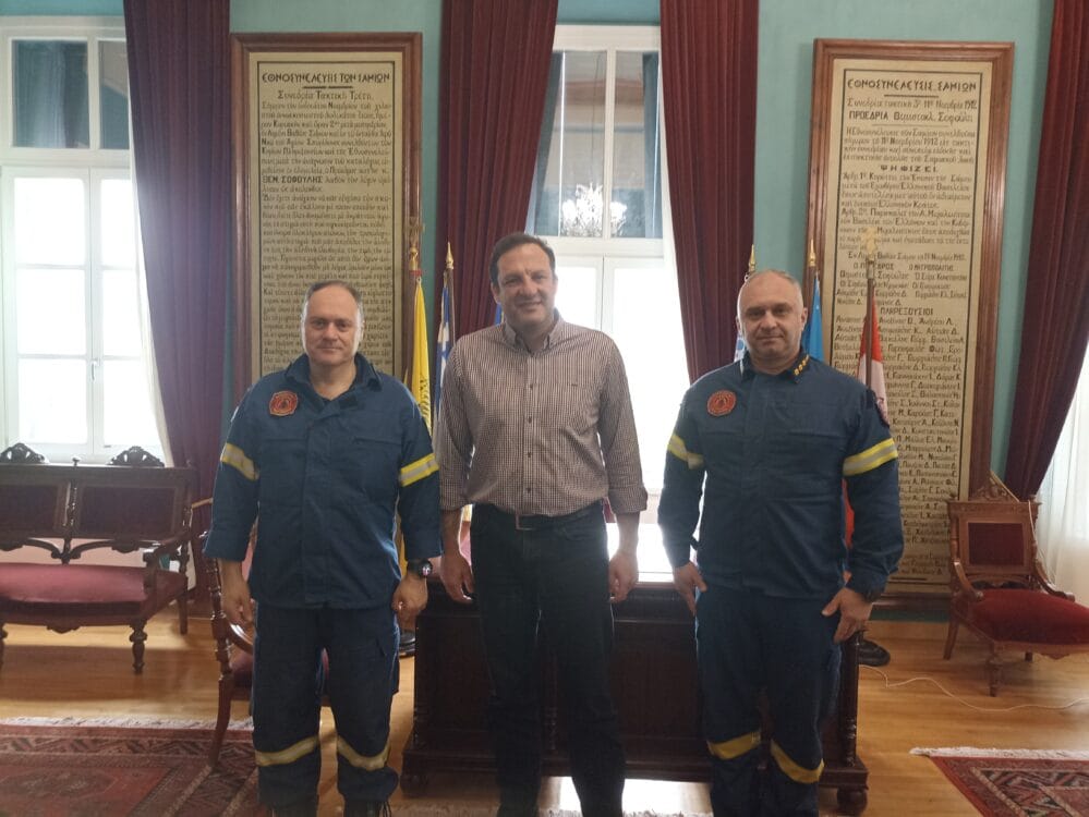 Σήμερα, Τρίτη 4 Φεβρουαρίου 2025, πραγματοποιήθηκε εθιμοτυπική συνάντηση του Δημάρχου Ανατολικής Σάμου κ. Πάρη Παπαγεωργίου με τον νέο Διοικητή της ΔΙ.Π.Υ.Ν. Σάμου, Αρχιπύραρχο κ. Ευάγγελο Λιακόπουλο. Στη συνάντηση παρευρέθηκε επίσης ο Διοικητής της Πυροσβεστικής Υπηρεσίας Σάμου, Πύραρχος κ. Γιώργος Μιαούλης.