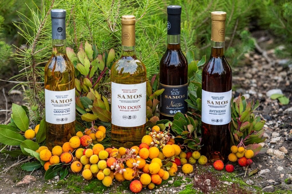 Όλη η Σάμος είναι ένα μεγάλο αμπελοτόπι, που πάνω του επένδυσαν μεράκι, κόπο και προσπάθεια γενιές και γενιές αμπελοκαλλιεργητών. Στις ορεινές πεζούλες ξερολιθιάς το μικρόρωγο μοσχάτο σταφύλι εμπλουτίζεται σε γεύση και αρώματα από το φυσικό περιβάλλον, τον ήλιο, τη βροχή, τη θαλασσινή ανάσα του Αιγαίου. Αυτή η μακρά αμπελουργική παράδοση του νησιού συνεχίζει το ταξίδι της στη διεθνή οινική καταξίωση, μέσω των βραβείων που επάξια κερδίζουν τα ΞΗΡΑ, ΗΜΙΞΗΡΑ και ΓΛΥΚΑ ΜΟΣΧΑΤΑ κρασιά του Οινοποιητικού Συνεταιρισμού της Σάμου. Γεμάτα ιστορία και παράδοση, χάρη στη χειρωνακτική εργασία και το ακάματο μεράκι των 1.500 αμπελουργικών οικογενειών που απαρτίζουν το Συνεταιρισμό, τα ολόχρυσα μοσχάτα κρασιά απέσπασαν και φέτος 16 ΧΡΥΣΑ και ΜΕΓΑΛΑ ΧΡΥΣΑ βραβεία στους πλέον αναγνωρισμένους και αδιάβλητους διεθνείς διαγωνισμούς, επιβεβαιώνοντας την αξεπέραστη, διαχρονική τους ποιότητα.