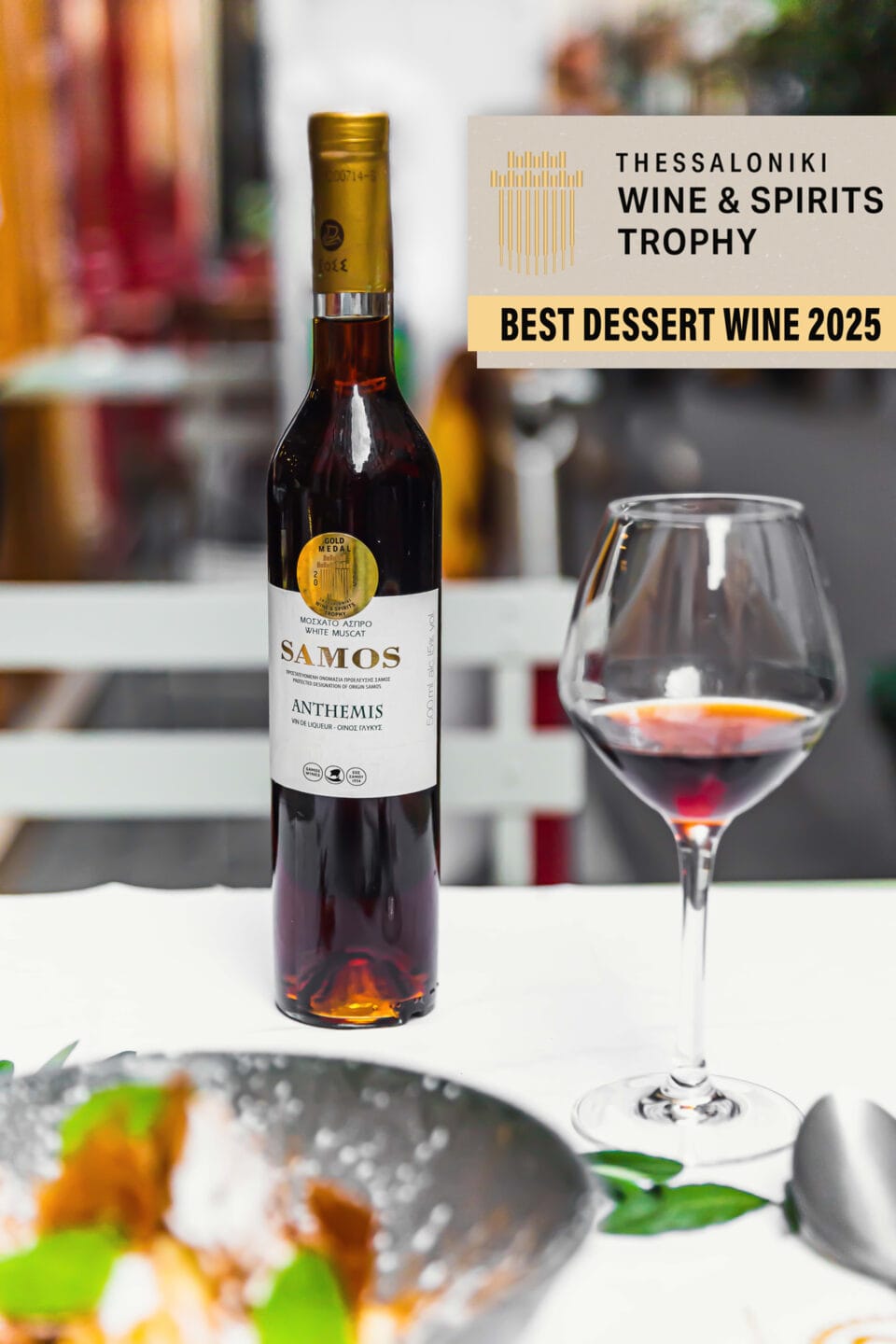 To παλαιωμένο επί 5ετία σε δρύινο βαρέλι, το ονομαστό σαμιώτικο μοσχάτο SAMOS ANTHEMIS αναδείχτηκε ως “Ο ΚΑΛΥΤΕΡΟΣ ΕΠΙΔΟΡΠΙΟΣ ΟΙΝΟΣ”στον έγκριτο και αυστηρών κριτηρίων 25ο Διεθνή Διαγωνισμό Thessaloniki Wine and Spirits Trophy.