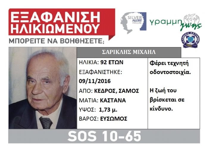Με τη μυστηριώδη εξαφάνιση του 92χρονου Μιχάλη Σαρικλή απο τη Σάμο, ασχολείται η δημοσιογράφος Αγγελική Νικολούλη ,ερευνώντας την περίεργη υπόθεση.