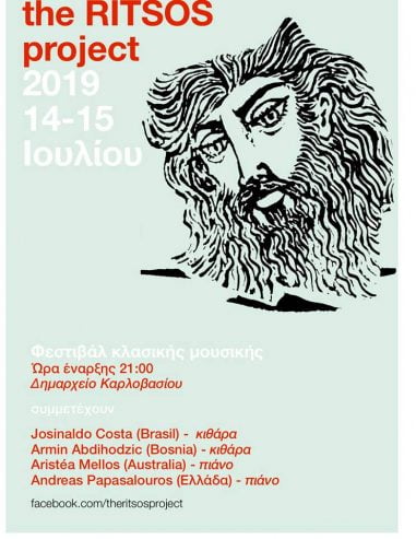 Στις 14 και 15 Ιουλίου 2019 θα πραγματοποιηθεί στην αίθουσα εκδηλώσεων του Δήμου  Καρλοβασίου το διήμερο φεστιβάλ Ritsos Project με συναυλίες κλασικής μουσικής.
