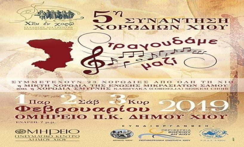 Η Χορωδία της Ένωσης Μικρασιατών Σάμου συμμετέχει για 2η συνεχή χρονιά στη 5η συνάντηση χορωδιών ΧΙΟΥ το Σάββατο 2 Φεβρουαρίου 2019. Μαέστρος της χορωδίας, ο αγαπημένος δάσκαλός Στέφανος Πουλτσάκης.