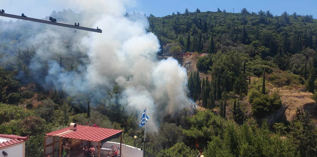 Yπό έλεγχο η πυρκαγιά που ξέσπασε λίγο μετά τις 13:00 το μεσημέρι στην περιοχή “Βράχος” στο Άνω Βαθύ, πλησίον του πρώην ξενοδοχείου «Χριστιάνα».