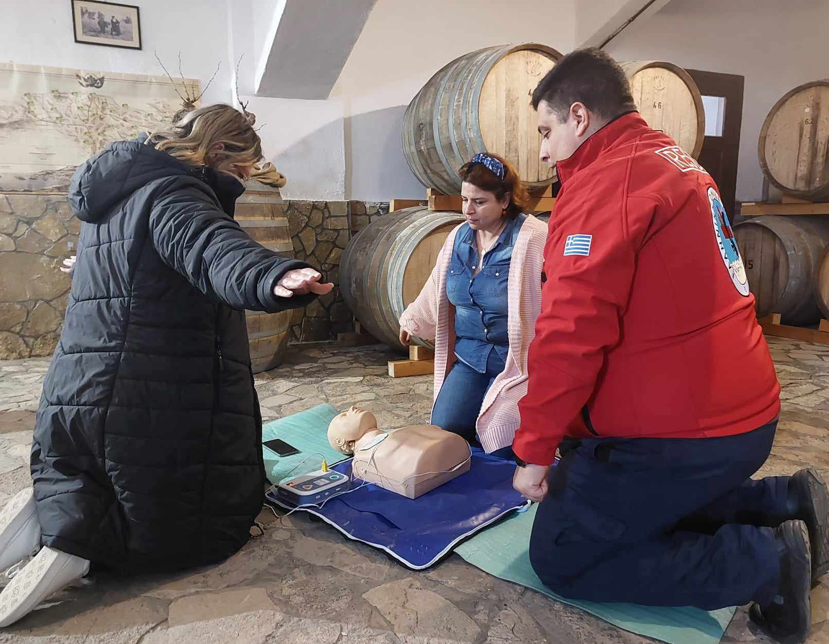 Ο Συνεταιρισμός της Σάμου, με μια πάγια θέση κοινωνικής μέριμνας και προστασίας της ανθρώπινης ζωής συνεργάστηκε με το Παράρτημα Σάμου της Ελληνικής Ομάδας Διάσωσης. Διοργάνωσαν από κοινού την Πέμπτη 8 Ιανουαρίου 2024 στο Οινοποιείο του ΕΟΣ Σάμου στο Καρλόβασι, το πρώτο πιστοποιημένο σεμινάριο πρώτων βοηθειών – βασικής υποστήριξης της ζωής – BLS/AED, υπό την αιγίδα του ERC – European Resuscitation Council . Οι 15 συμμετέχοντες εκπαιδεύτηκαν και πιστοποιήθηκαν στην βασική υποστήριξη της ζωής- την καρδιοπνευμονική αναζωογόνηση ΚΑΡΠΑ με χρήση αυτόματου εξωτερικού απινιδωτή ΑΕΑ. Εκπαιδεύτηκαν με θεωρητική μάθηση αλλά και πρακτική εξάσκηση στην αντιμετώπιση πνιγμονής σε ενήλικους, την αντιμετώπιση λιποθυμίας, επιληπτικής κρίσης, θέση ανάνηψης (πλάγια θέση ασφαλείας) καθώς και σε άλλα θέματα πρώτων βοηθειών, εξειδικευμένα, τα οποία μπορεί να συμβούν σε εργασιακούς χώρους, όπως πτώσεις από ύψος, δηλητηριάσεις κλπ. Οι εκπαιδευόμενοι έδειξαν μεγάλο ενδιαφέρον τόσο στη συμμετοχή όσο και στην παρακολούθηση.