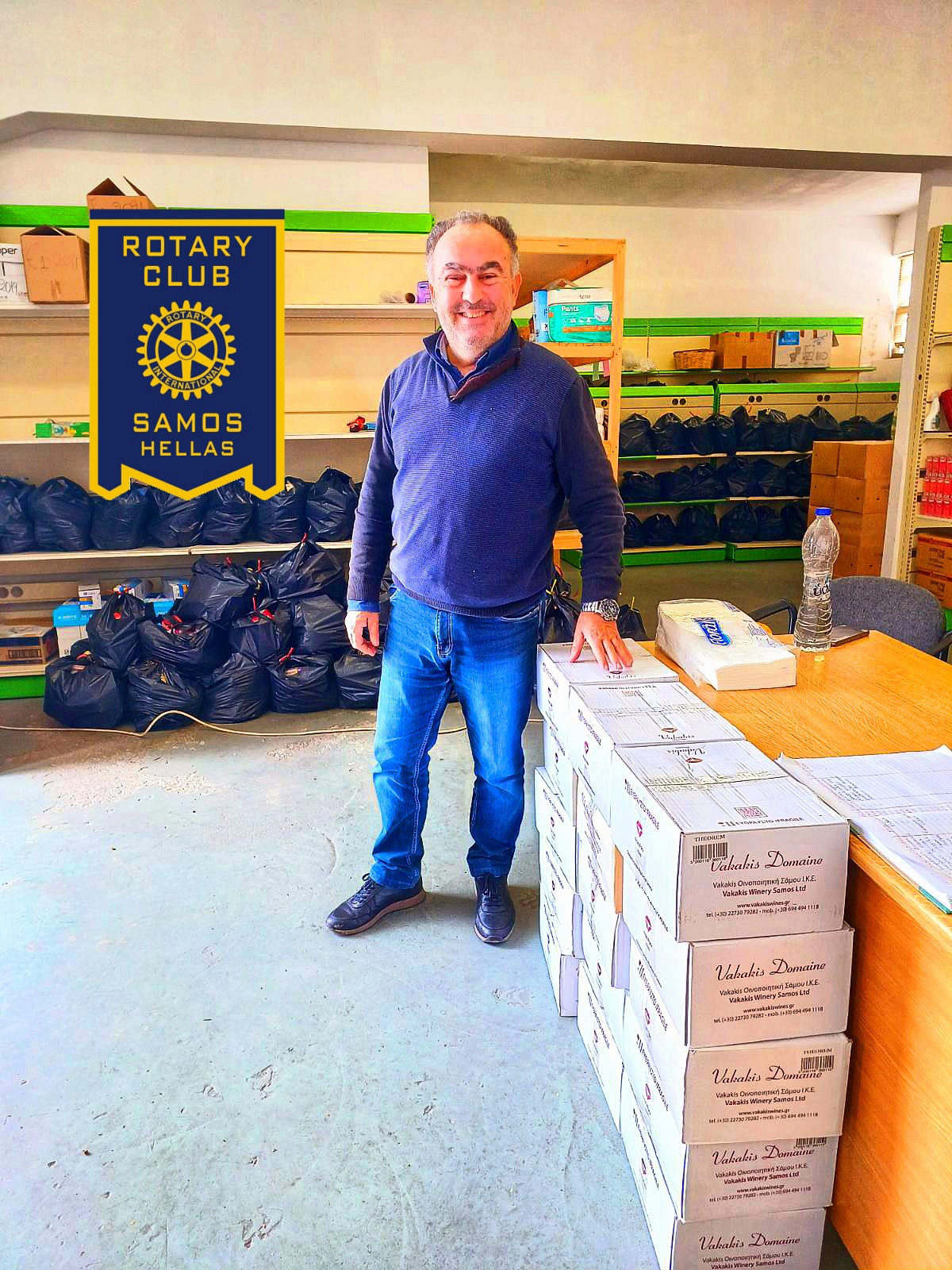 Σήμερα Τρίτη 19/12/2023, όπως κάθε χρόνο, ο Ροταριανός Όμιλος Σάμου, πραγματοποίησε μεγάλη Δωρεά Κρεάτων, εκλεκτού Οίνου της πολυβραβευμένης Εταιρείας Vakakis Wines, ρούχων και κλινοσκεπασμάτων, για την κάλυψη αναγκών 300 Οικογενειών Συμπολιτών μας, εγγεγραμμένων δικαιούχων του Διαδημοτικού Οργανισμού.