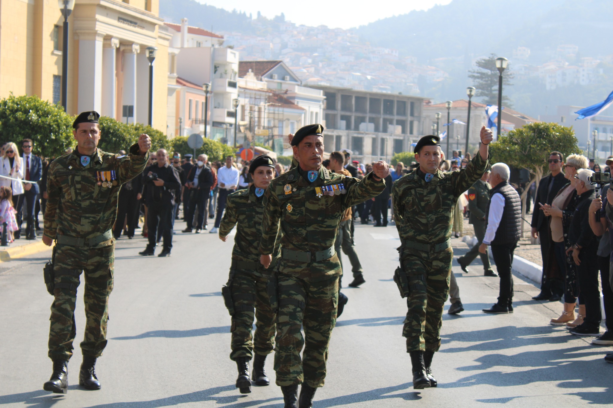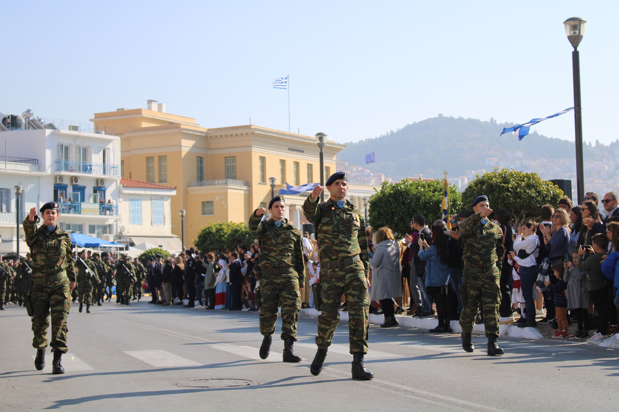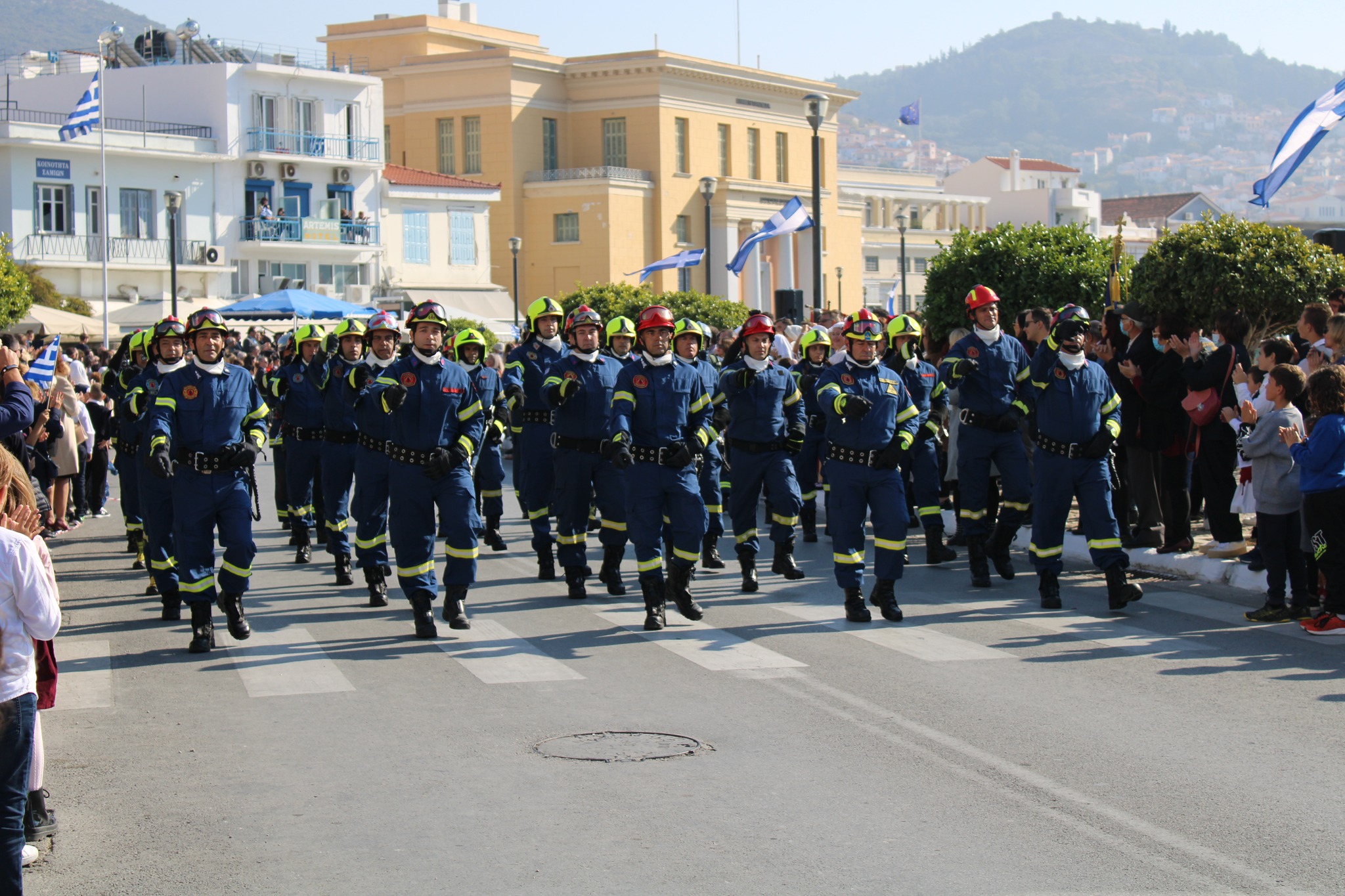 Ακολούθησε παρέλαση της μαθητικής νεολαίας, του στρατού, της πυροσβεστικής και παραδοσιακών συλλόγων ενώ δύο μαχητικά αεροσκάφη f-16 έκαναν τιμητική υπερπτήση πάνω από την Σάμο.