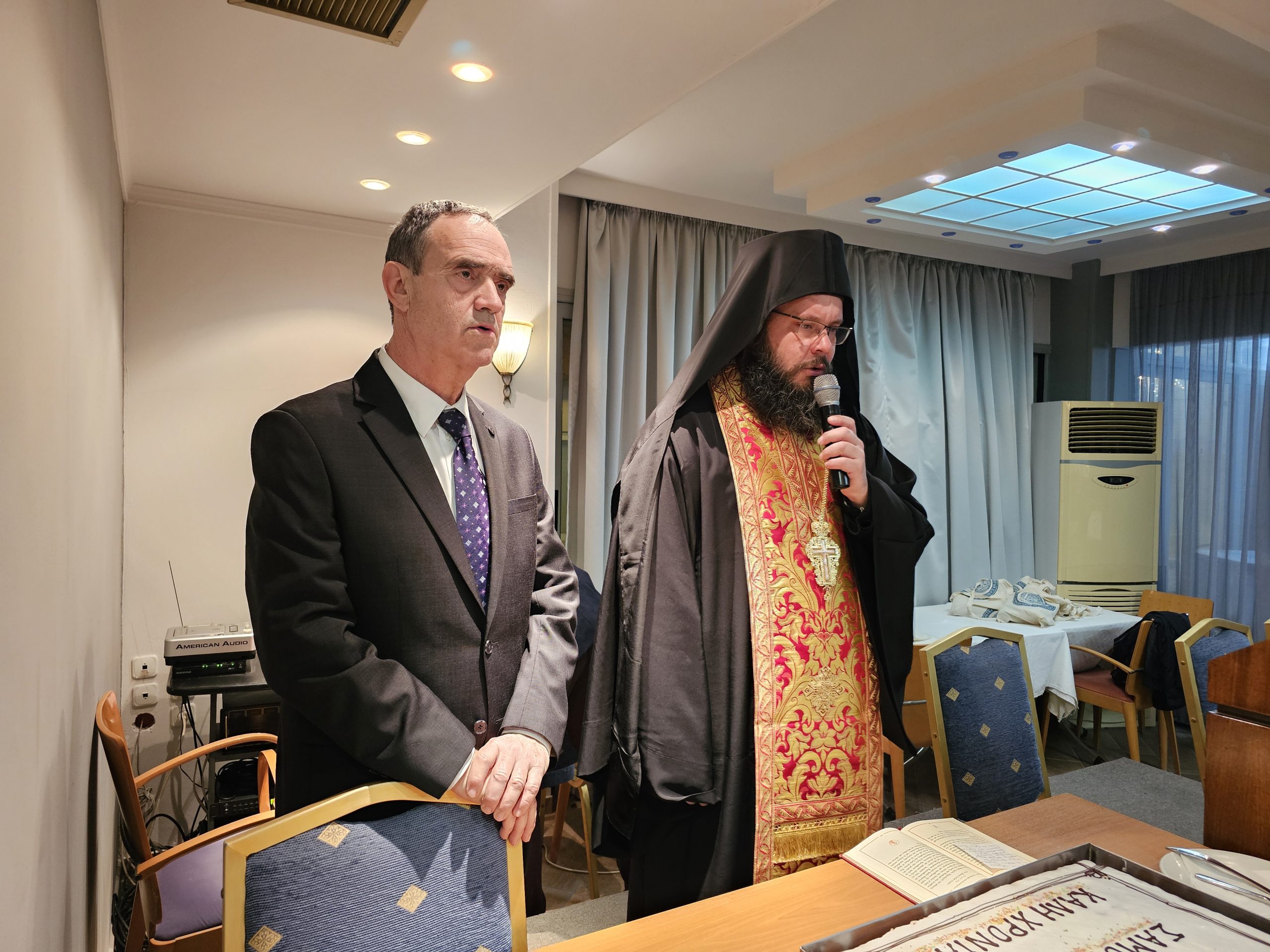 Την πρωτοχρονιάτικη πίτα ευλόγησε ο Αρχιμ. Αμφιλόχιος Φλεβάρης , ο οποίος ευχήθηκε στους παρισταμένους υγεία και μακροημέρευση..